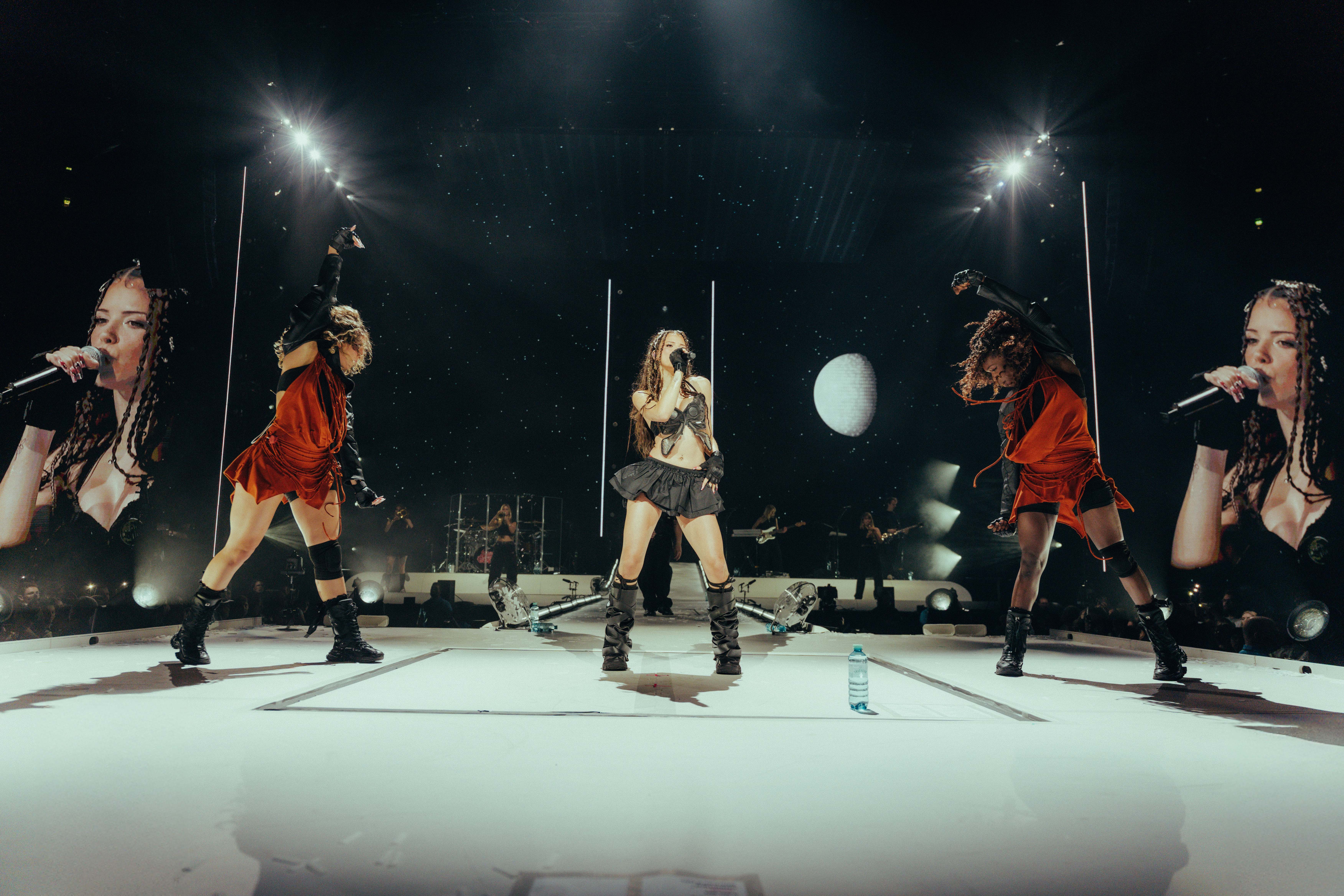For Nina Chuba’s arena tour across Germany’s largest concert venues, Amelie collaborated with Pierre Beecroft on the development of the show visuals. Together, they created immersive three-dimensional worlds precisely aligned with the lighting design, allowing visuals and light to interact as one cohesive system. In addition, they developed typographic animations that reflect the current zeitgeist and amplify the tour’s contemporary visual language. In addition, we developed Notch effects together with Pixway GmbH that were triggered live by Nina’s movements on stage, momentarily placing her inside an immersive water world.
